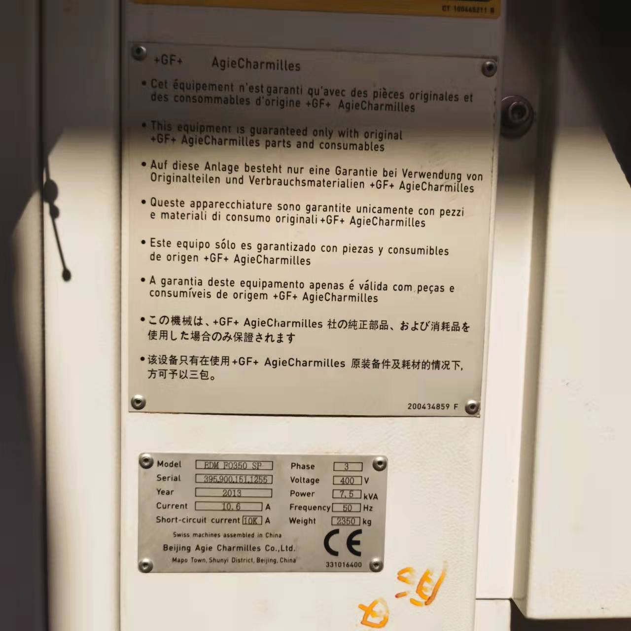 現(xiàn)貨出售夏米爾FO350Sp火花機(jī)1臺,三軸行程350×250×300,最大工件尺寸780×530×300,最大電極重量50,最大工件重量500kg,電介質(zhì)箱容量410L,帶刀庫16把刀,2013年出廠,需要的請聯(lián)系。